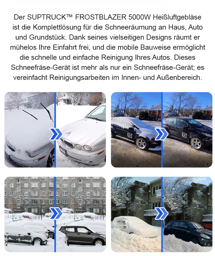 ❄️ Der beheizte Schnee-Blaster entfernt Schnee und Eis in unter 10 Sekunden mit kraftvollem Heißluftstrom – 100 % sicher für alle Fahrzeugtypen.