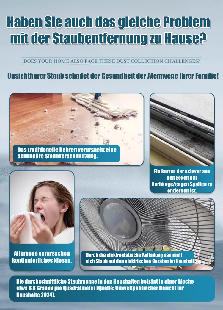 🌟 Fängt schwebende Partikel sofort ein – in nur 3 Sekunden! 🌟 Nie wieder mühsames Abstauben! 🌟 Chlorfrei und hautfreundlich – sicher für Schwangere, Babys und Haustiere!